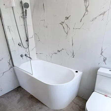 Bathroom was very clean. 25 mins by car from the airport. Location met the demands.